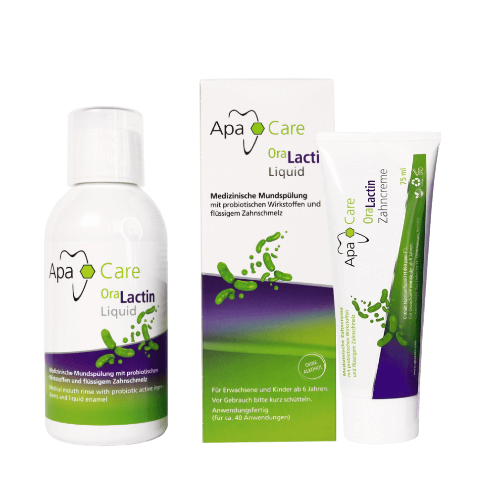 ApaCare OraLactin pre- ja postbiootiline hambapasta + suuvesi toetavad ja säilitavad tervislikku suu mikrofloorat. Igapäevaseks kasutamiseks. Hea suu mikrofloorale Pre- ja postbiootiline Hüdroküapatiitiga (remineraliseeriv) Fluoriidiga (1450ppm F) Igapäevaseks kasutamiseks