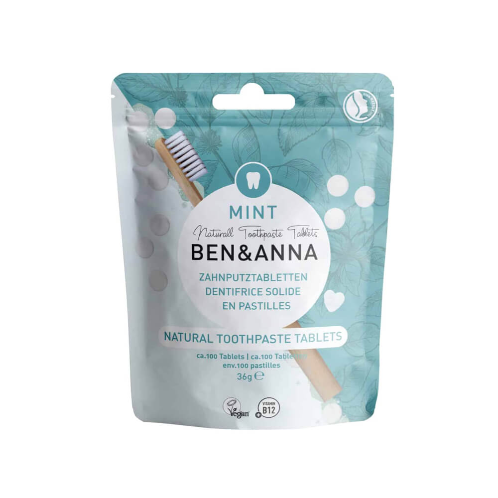 Hoolikalt valitud koostisosadest valmistatud naturaalsed vegan Ben&Anna fluoriidivabad hambapesutabletid! Tablettide valmistamiseks on kasutatud kookosõli ning akaatsia ja mündi ekstrakti.