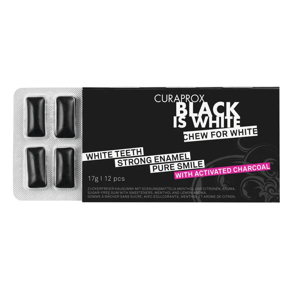Aktiivsöega musta värvi närimiskumm pidurdab hambakatu teket. Aktiivsüsi eemaldab hammastele toidust ja joogist tekkinud pigmentatsioonid. Hüdrosküapatiit tugevdab hambaemaili.
