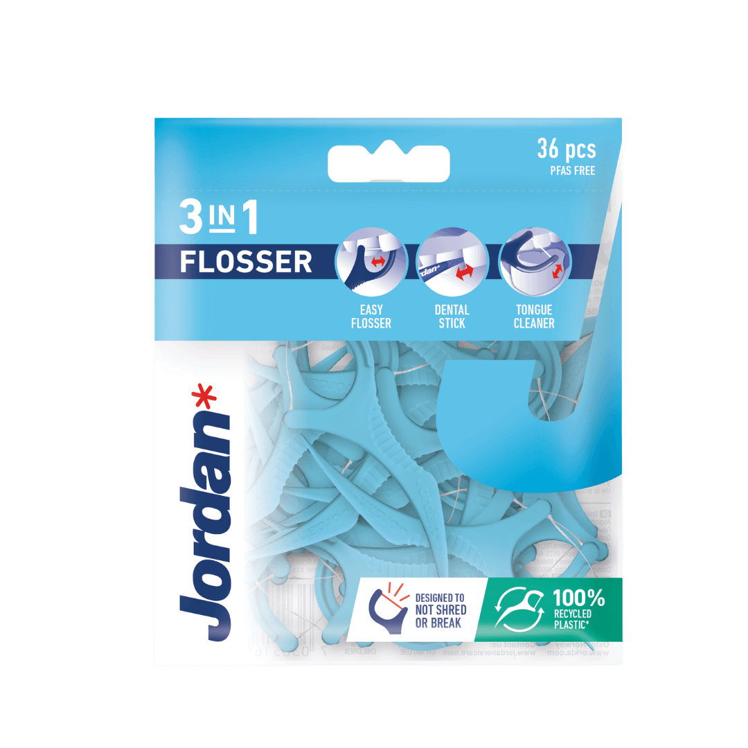 Kolm ühes ja igati mugav! Jordan 3-in-1 Flosser on nutikas abivahend kiire elutempo jaoks – see ühendab hambaniidi, hambaorgi ja keelepuhasti. Suur pakend (50tk) Mugav kasutada Hambatikuga käepide