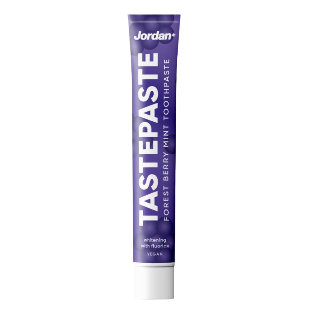Jordan Tastepaste Forest Berry Mint 50ml hambapasta – täida hambapesu põnevate maitsetega samal ajal hoolitsedes oma valge naeratuse eest. Põnev metsamarja-mündi maitse Valgendav toime 100% vegan Fluoriidikaitse