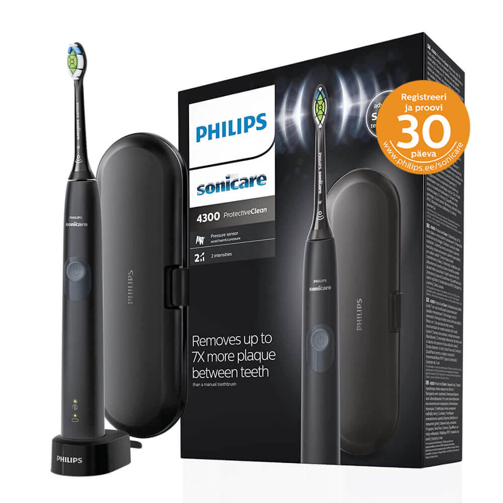 Philips Sonicare ProtectiveClean 4300 HX6800/87 elektrilise hambaharjaga on hammaste puhastamine alati õrn ja efektiivne tänu integreeritud survesensorile, mis aitab vältida liigset survet. 1 käepide (2 intensiivsust) 1 otsik (C2 Optimal Plaque Defence, Keskmine tugevus) Laadija Reisivutlar (laadimisfunktsioonita) Proovi 30 päeva (kampaania)