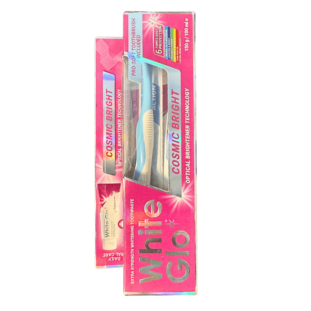 White Glo Cosmic Bright valgendav hambapasta on tõhus ja samas õrn igapäevaseks kasutamiseks mõeldud hambapasta, mis aitab eemaldada hammaste pinnaplekke ning hoiab naeratuse loomulikult säravana. Igapäevaseks suuhoolduseks Optiline helendamine Eemaldab pinnaplekid Valgendav Sisaldab fluoriidi 1000ppm F Kaasa käsihambahari