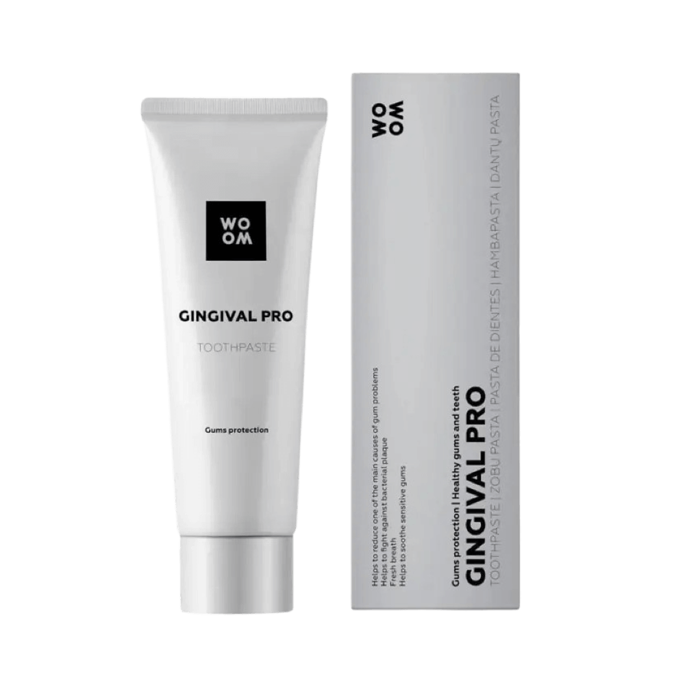 Woom Gingival PRO hambapasta aitab vähendada igemeprobleemide, nagu igemepõletiku ja igemehaiguste, peamisi põhjuseid. Igemeprobleemide korral Rahustab igemeid Hambakatu vastu Kaitseb kaariese eest Sisaldab fluoriidi (1450 ppm F)